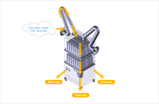 It is a system that can be installed for local exhaust at sites where emergency hazardous gas leaks and process pollutants occur. It is simple to operate, can handle more than 95% of harmful gases in a short time, and is mainly applied to indoor hazardous substances such as laboratories and factories.
