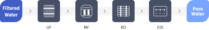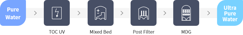 We supply the optimized system for the treatment and supply of the industrial water, potable water, demineralized water by using the ion-exchanger and membrane technology(UF, RO, EDI, MDG).
