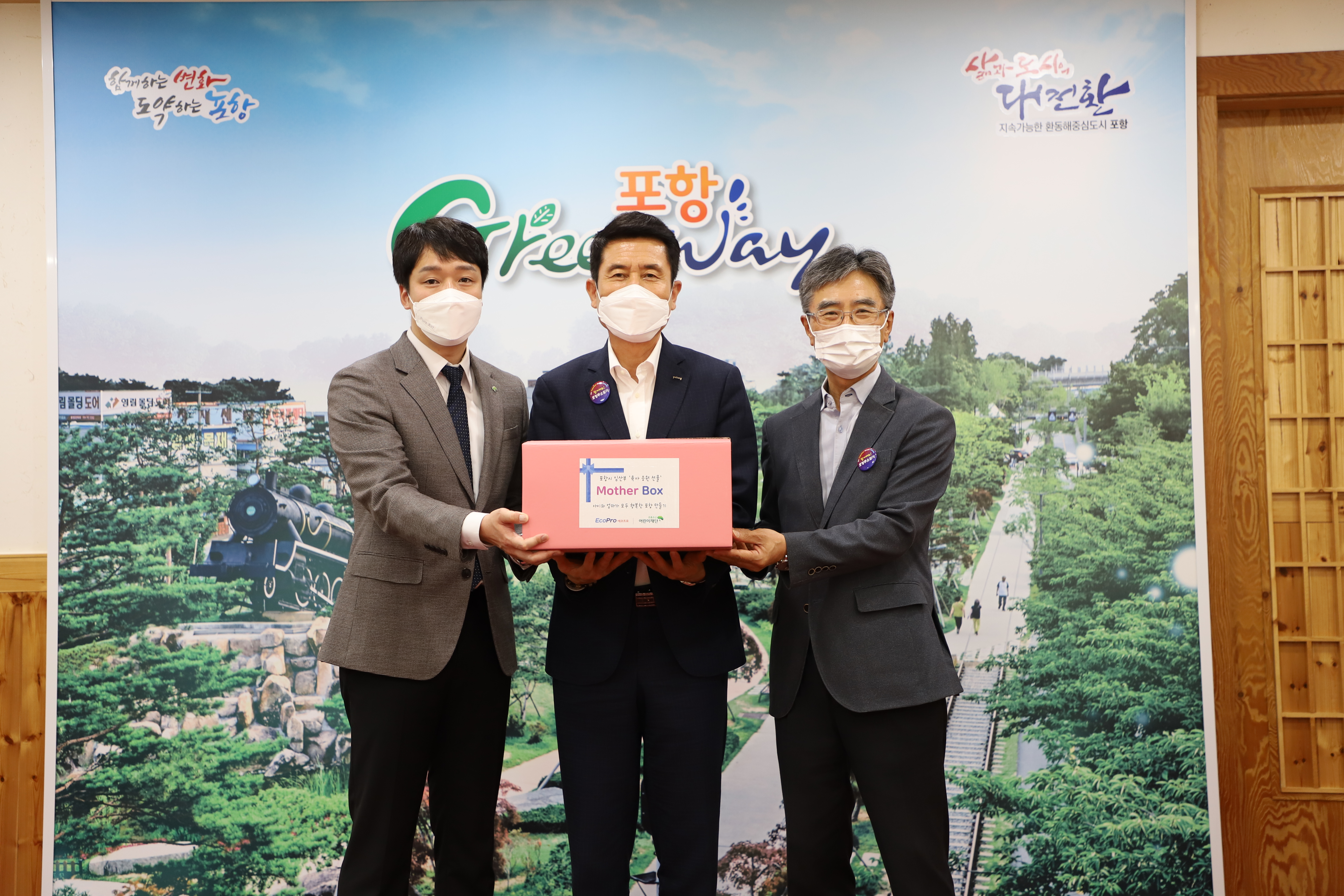 에코프로는 가정의 달을 맞아 충북과 포항시 저소득 가정(차상위, 다문화 가정)을 위한 마더박스 출산 축하용품 전달식을 진행했습니다.