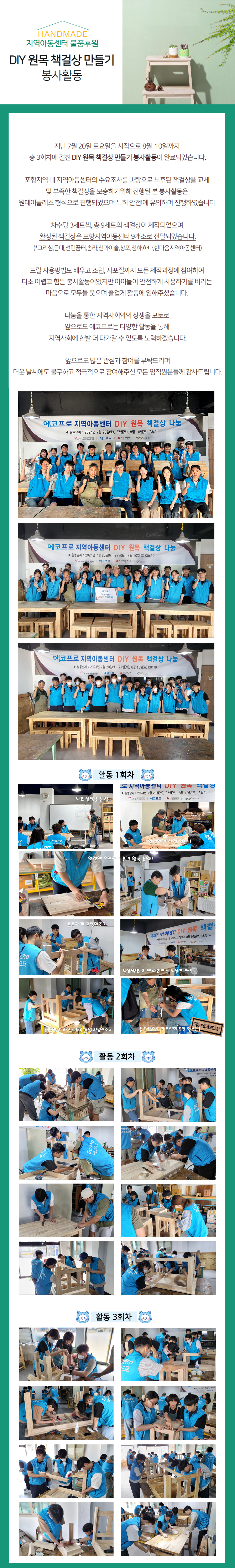 DIY 원목책걸상만들기 봉사활동(2024.07.20~08.10) 글보기