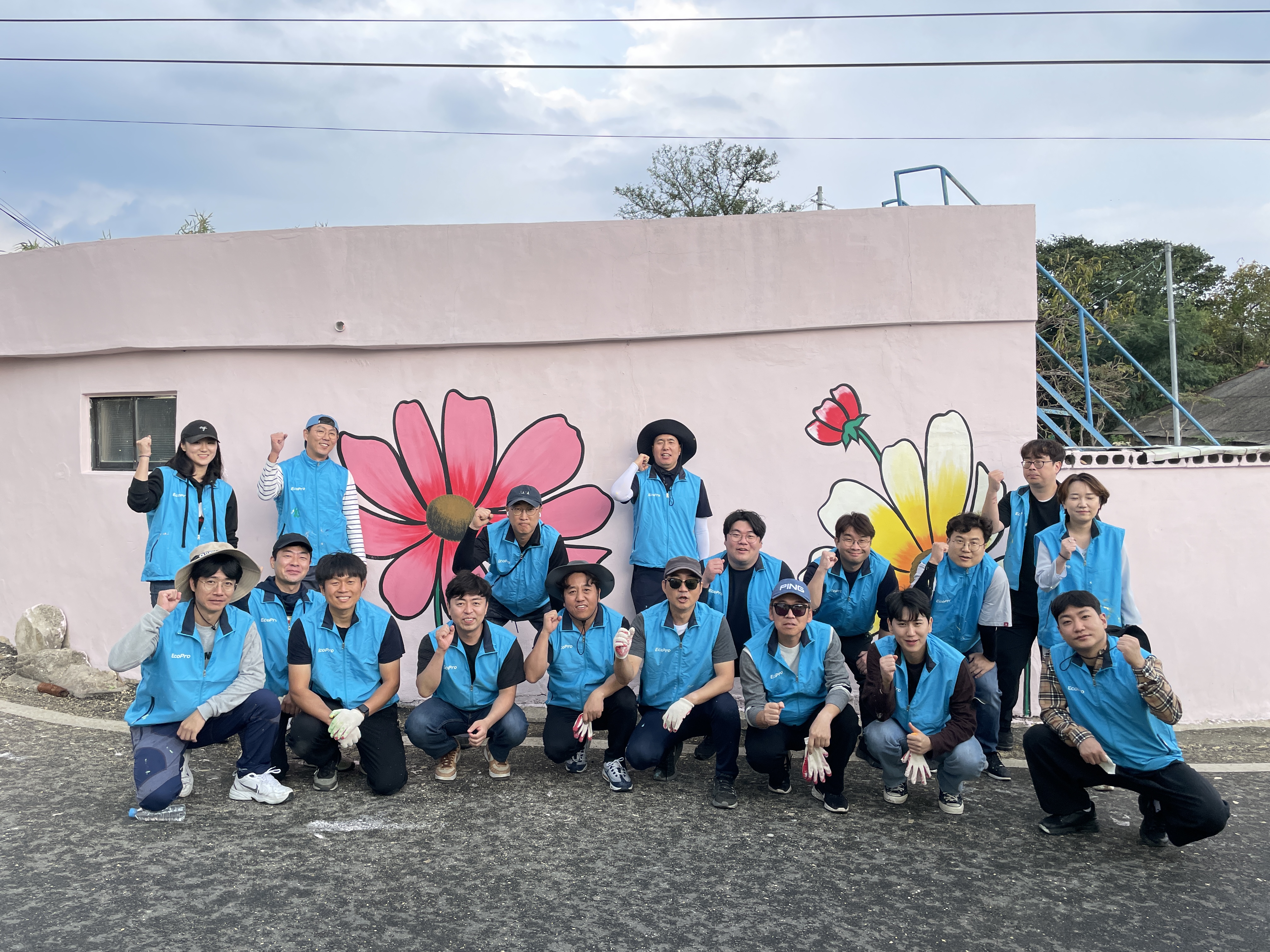 행복마을사업 지원과 더불어 진행된 벽화그리기 봉사활동으로 오래된 벽면을 새로 도색하고 화사한 그림을 그려주며 마을에 생기를 불어넣었습니다.