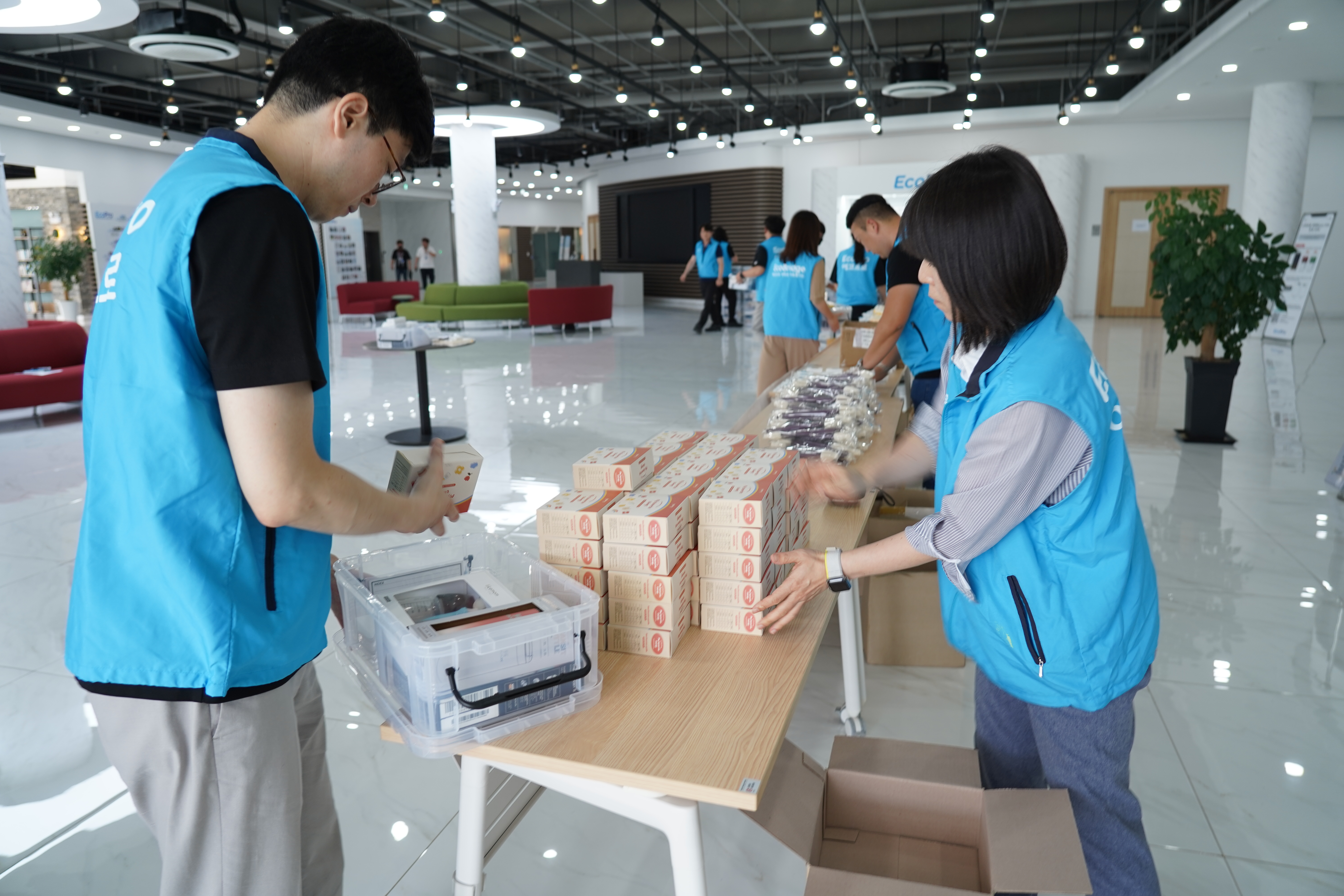 9월 6일, 송호준 대표이사는 임직원분들이 정성스럽게 포장한 마더박스를 충북 내 저소득 임산부 가정 170가구에 전달하였습니다.