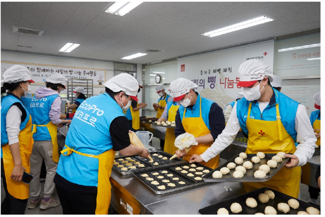 에코프로 직원들이 한 자리에 모여 제빵 봉사활동을 진행했습니다.