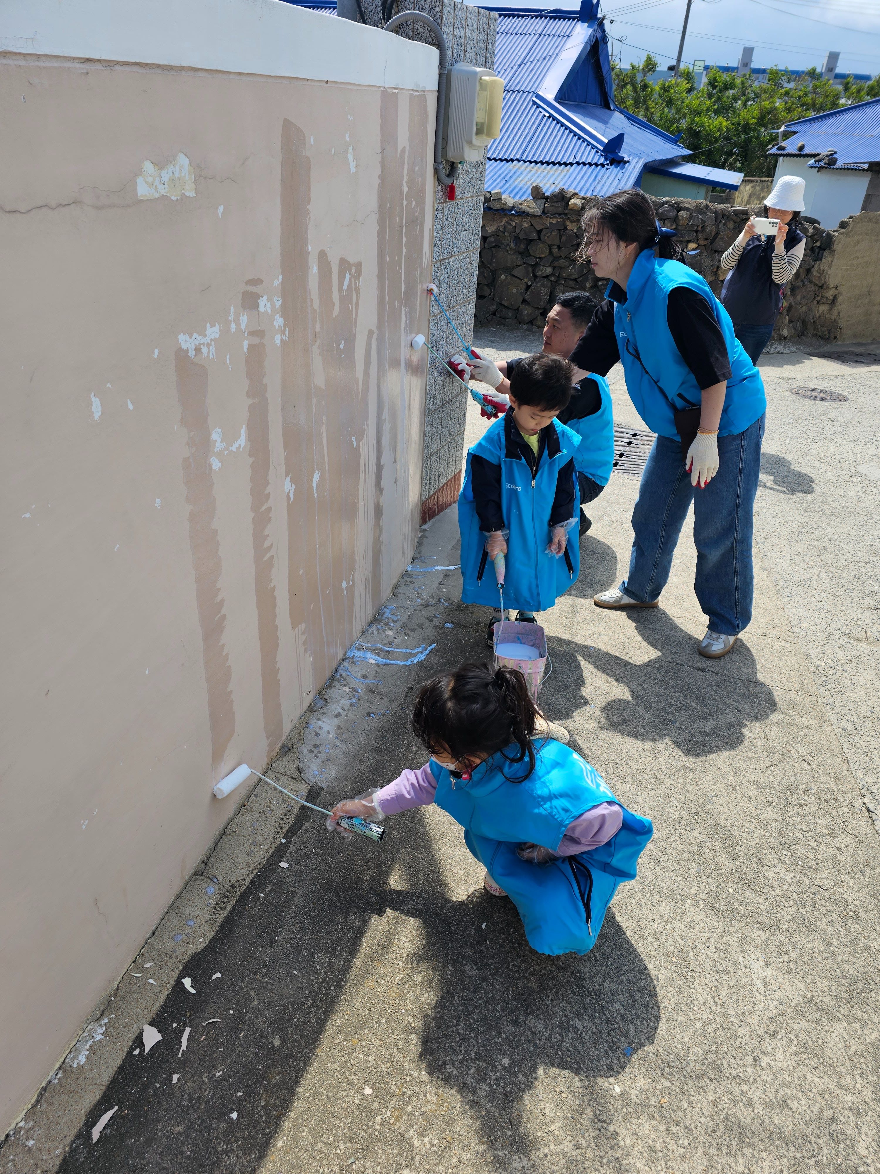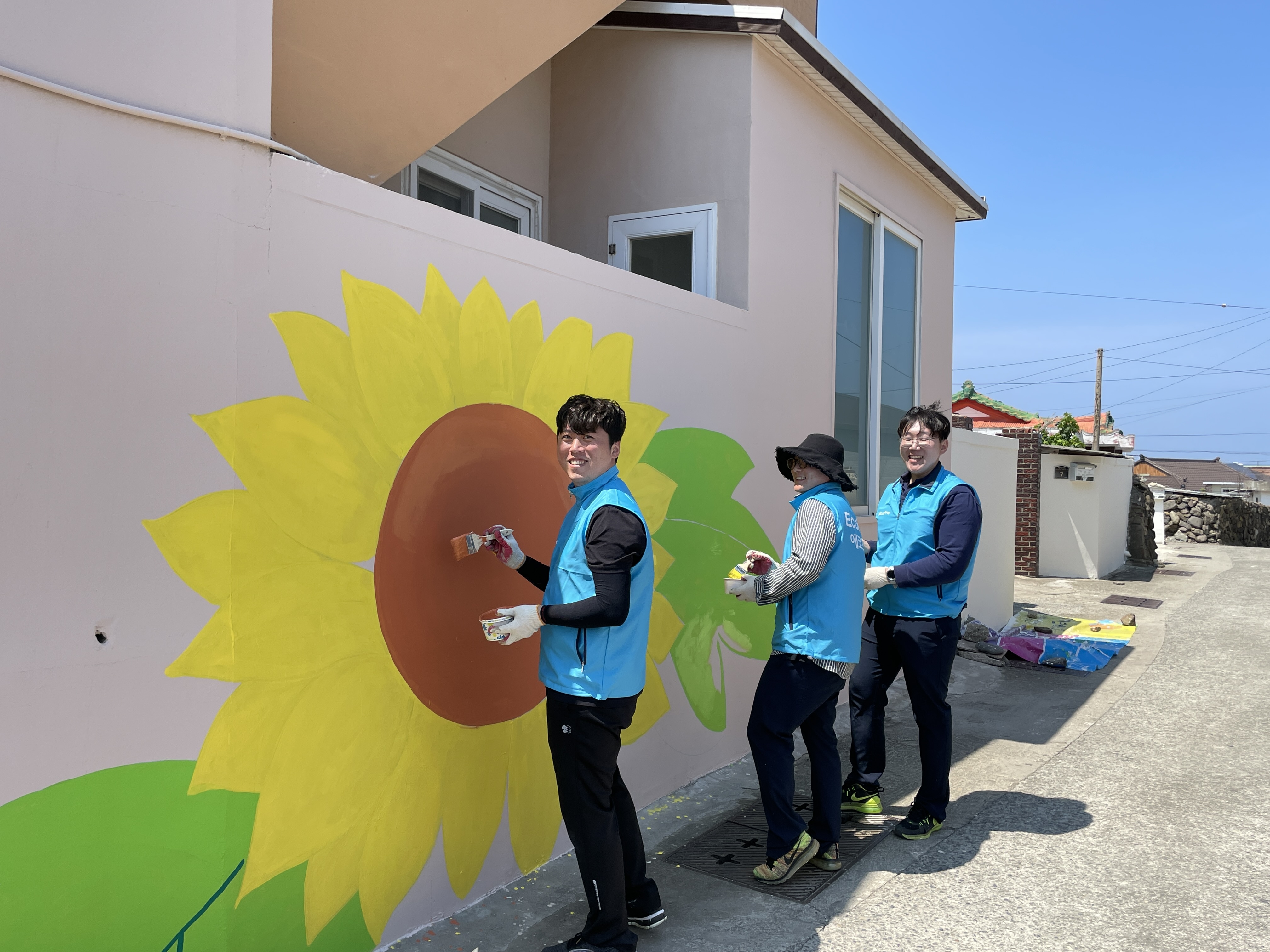 포항시 호미곶 구만1리 마을회관 일대에서 행복마을 벽화그리기 봉사활동을 진행하였습니다.