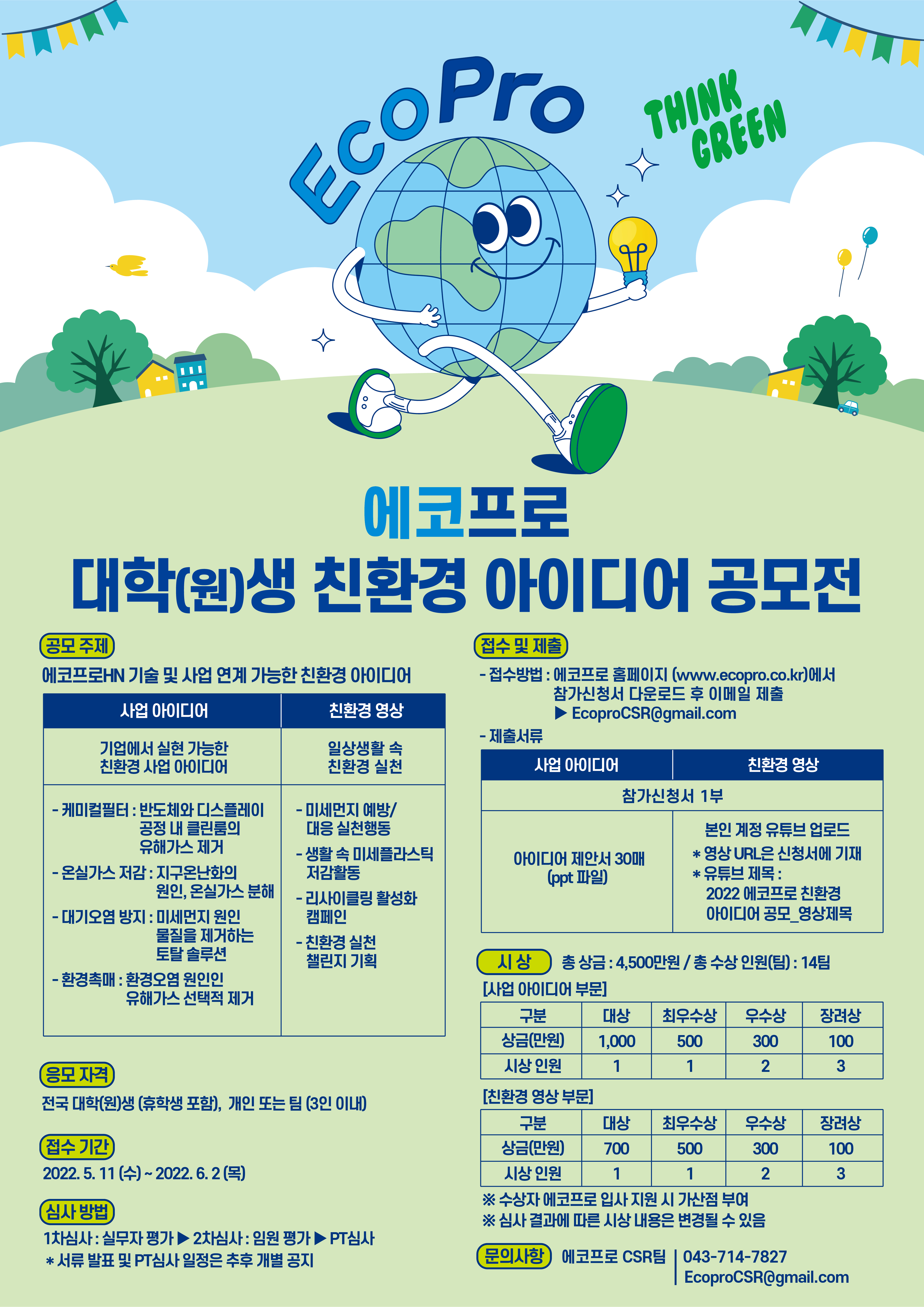 2022 에코프로 대학(원)생 친환경 아이디어 공모전