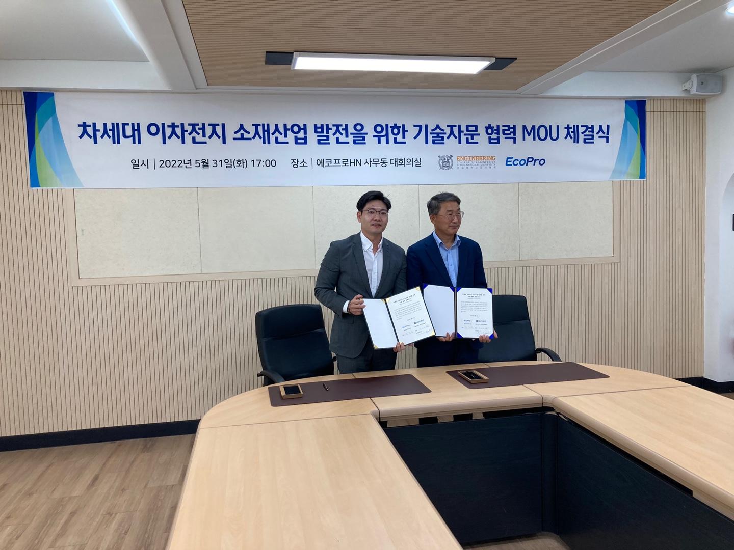 이번 협약식은 에코프로HN과 서울대학교 공과대학 간 기술자문단을 구성하여 이차전지 소재 분야 산학 교류를 활성화하기 위해 체결됐다. 이에 따라 에코프로HN은 이차전지 소재 사업 분야에 대해 서울대학교 공과대학 기술자문단의 조언을 얻고, 미래 신사업 및 차세대 소재 개발 연구를 위해 서울대학교 공과대학을 지원한다.