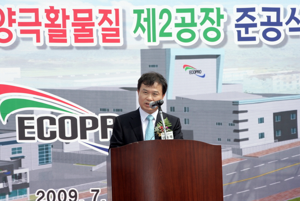 오늘 우리는 녹색성장 산업의 중심인 이차전지 재료 중 가장 중요한 양극활물질을 생산하는 공장을 준공합니다.