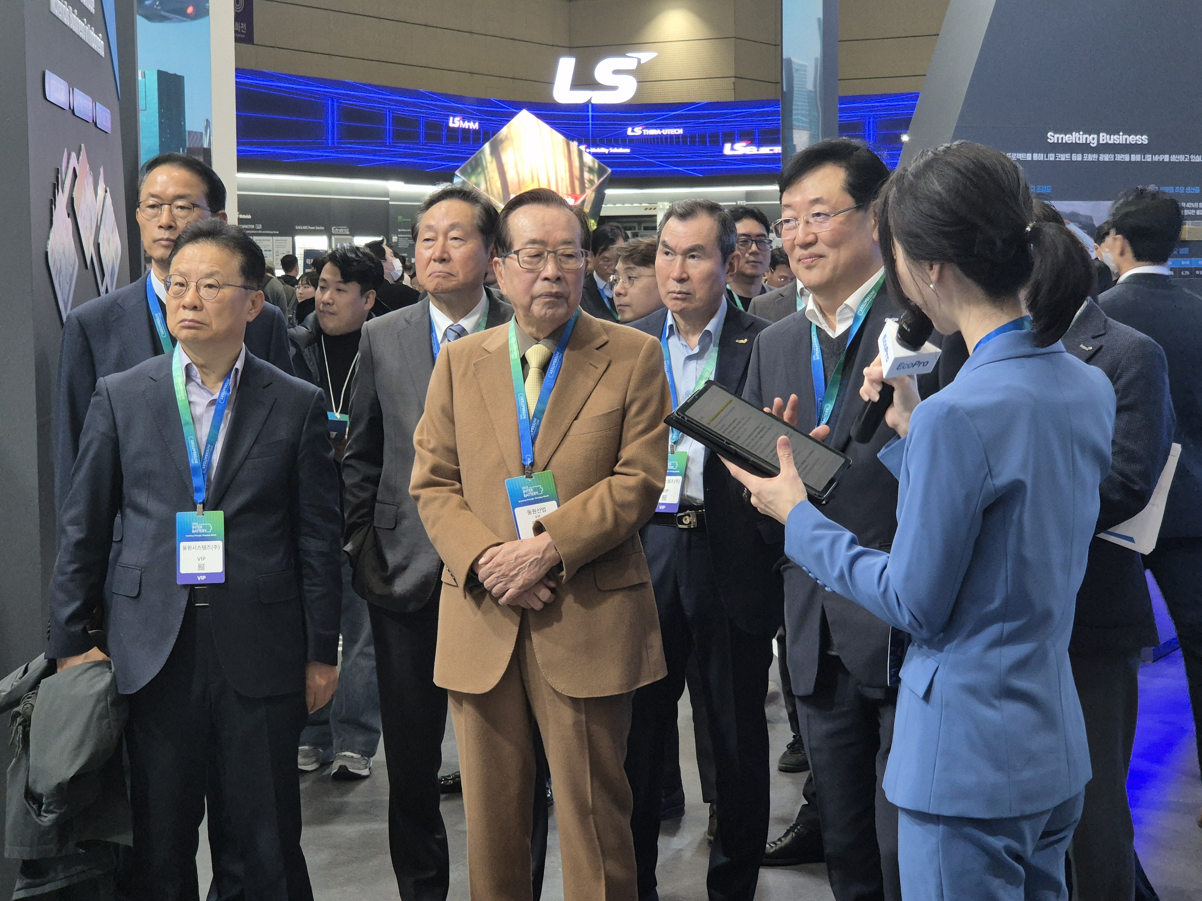 [사진1설명 : 이동채 에코프로 창업주가 지난 6일 인터배터리2025에서 에코프로 부스를 방문해 전시관을 둘러보고 있다]